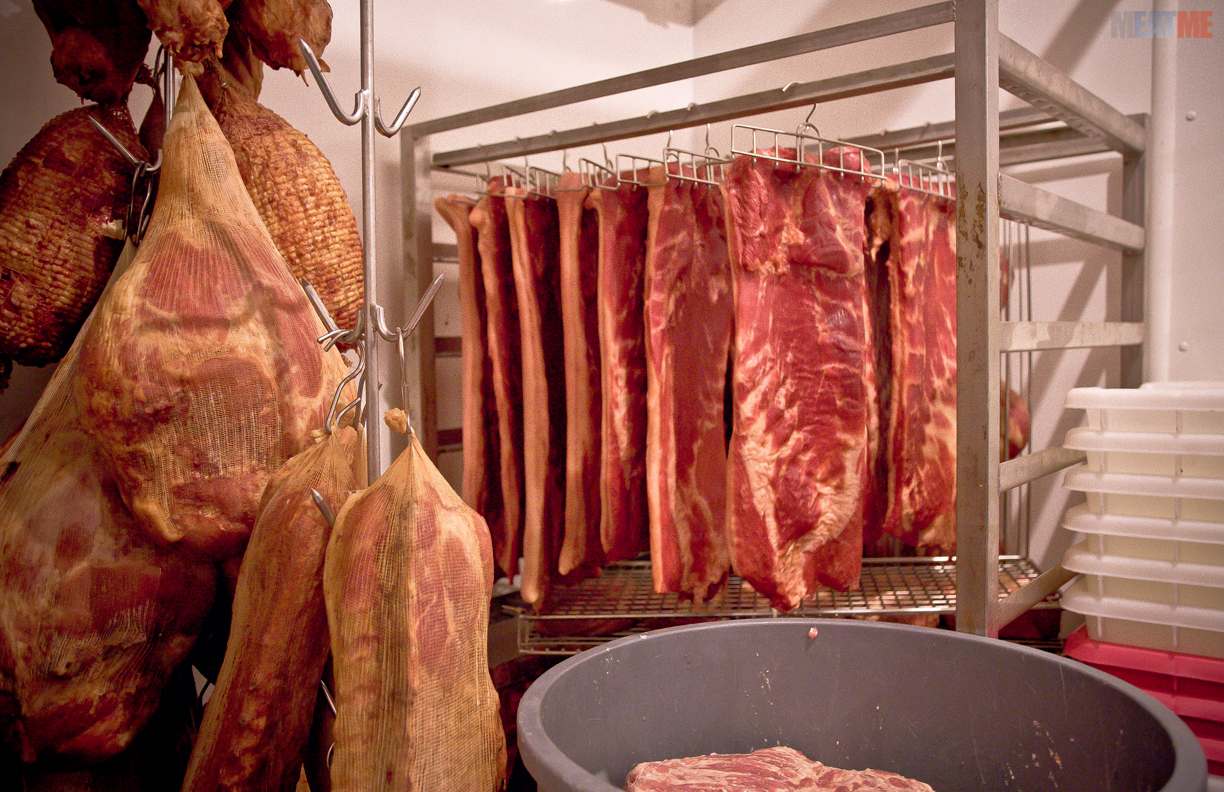 Cured Meat that has just come out of the smokehouse