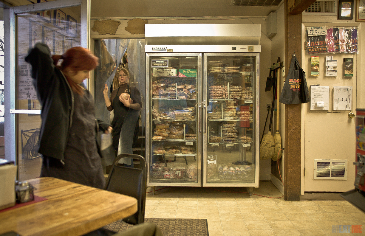 This is my first time in a small town. I grew up in Los Angeles constantly surrounded by tourist, seeing the same person twice is rare. I am lucky to know my neighbors let alone seeing someone at a local butcher shop. I pulled up, saw Jenny in the window, and right away she knew who I was. I grab handfuls of gear and headed inside. Jenny, looking stressed, says a quick hello and quickly introduces me to the rest of her family and just as quickly they are back to work.
